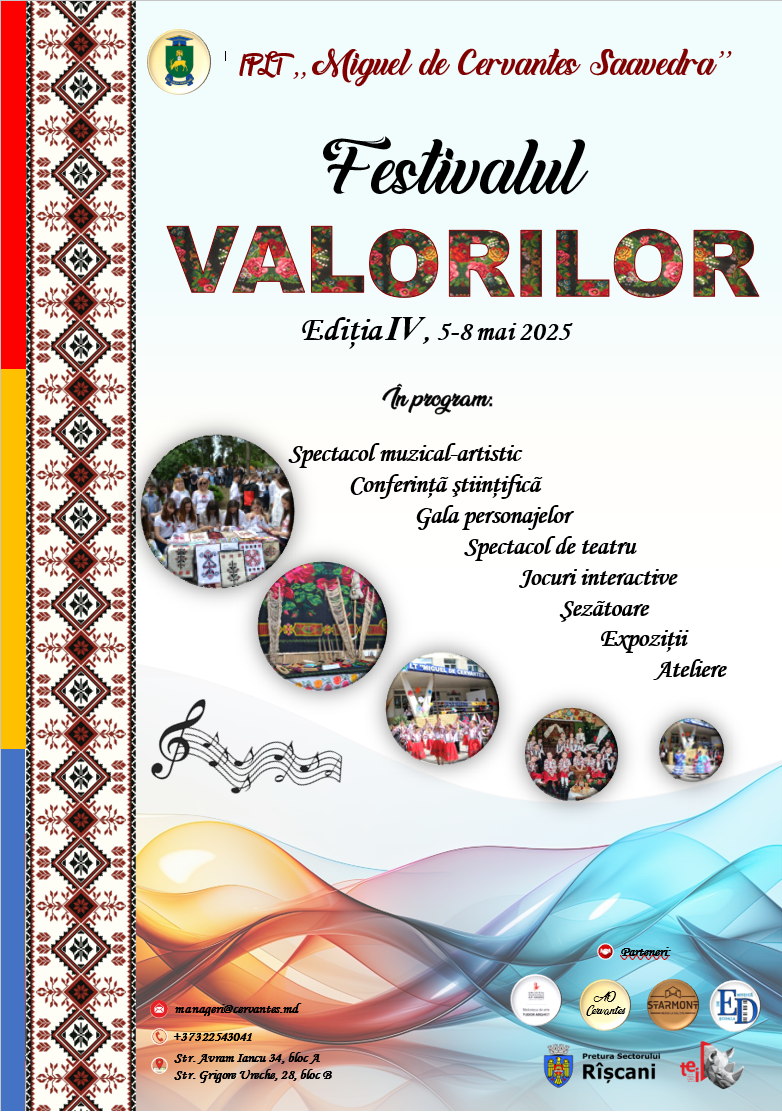 Festivalul Valorilor este un proiect educațional și cultural al IPLT „Miguel de Cervantes Saavedra” din Chișinău, ajuns la a patra ediție, care consolidează direcția strategică a instituției privind promovarea alfabetizării culturale și a educației axiologice. Conceput ca un eveniment deschis comunității, festivalul utilizează arta ca instrument pedagogic esențial pentru formarea valorilor umane și sociale.