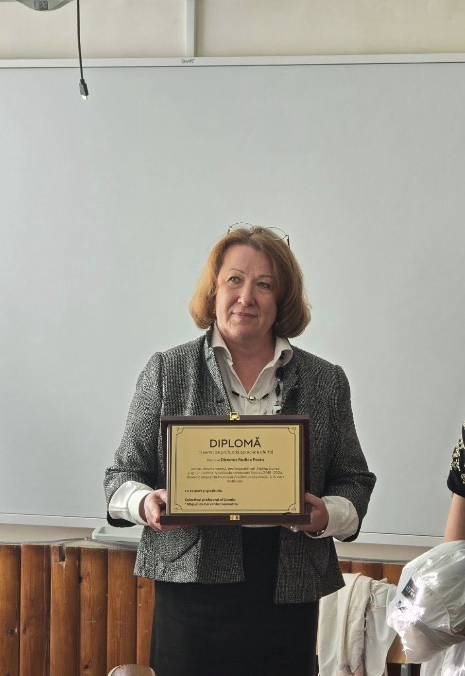 Încheierea mandatului doamnei director Rodica POSTU reprezintă un prilej de recunoștință pentru întreaga comunitate a liceului. Mandatul său s-a distins prin profesionalism, dedicare și o conduită care a îmbinat rigoarea managerială cu empatia și deschiderea către oameni. Sub conducerea sa, liceul a devenit mai mult decât un spațiu de învățare: a fost un mediu în care valori precum respectul, echilibrul și colaborarea au prins rădăcini. Prin verticalitate și corectitudine, doamna Postu a consolidat o cultură organizațională sănătoasă, în care elevii, profesorii și părinții s-au simțit susținuți și implicați. Liderul adevărat se recunoaște nu doar prin realizările vizibile, ci și prin efectul pozitiv, constant, pe care îl are asupra oamenilor și proceselor. În acest sens, contribuția doamnei Postu Rodica rămâne un reper pentru toți cei care fac parte din viața liceului.